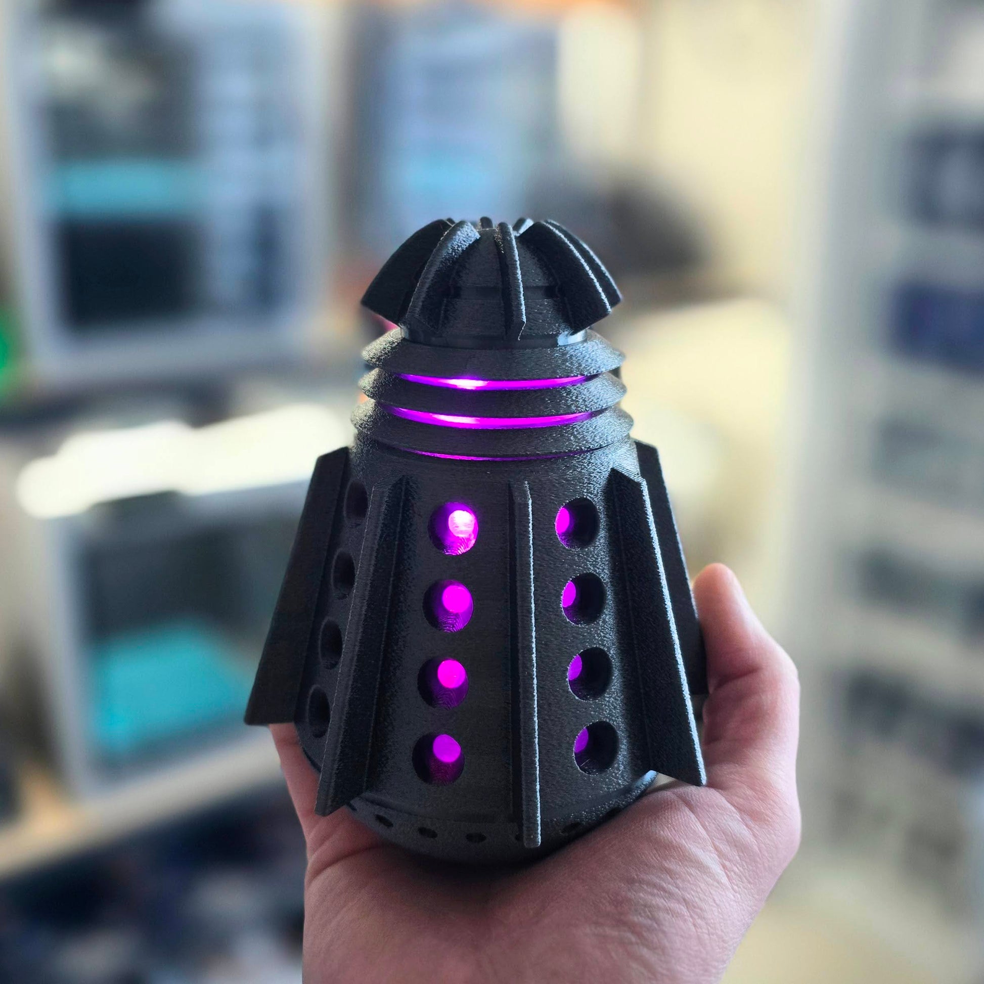 Forged in desperation to preserve the Dalek race, the Progenitor Device serves as a sealed genesis chamber containing untouched, pure Dalek DNA. Once activated, this ominous, egg‑like construct triggers an accelerated growth cycle, generating a fully formed Dalek with armor, weaponry ready to exterminate!